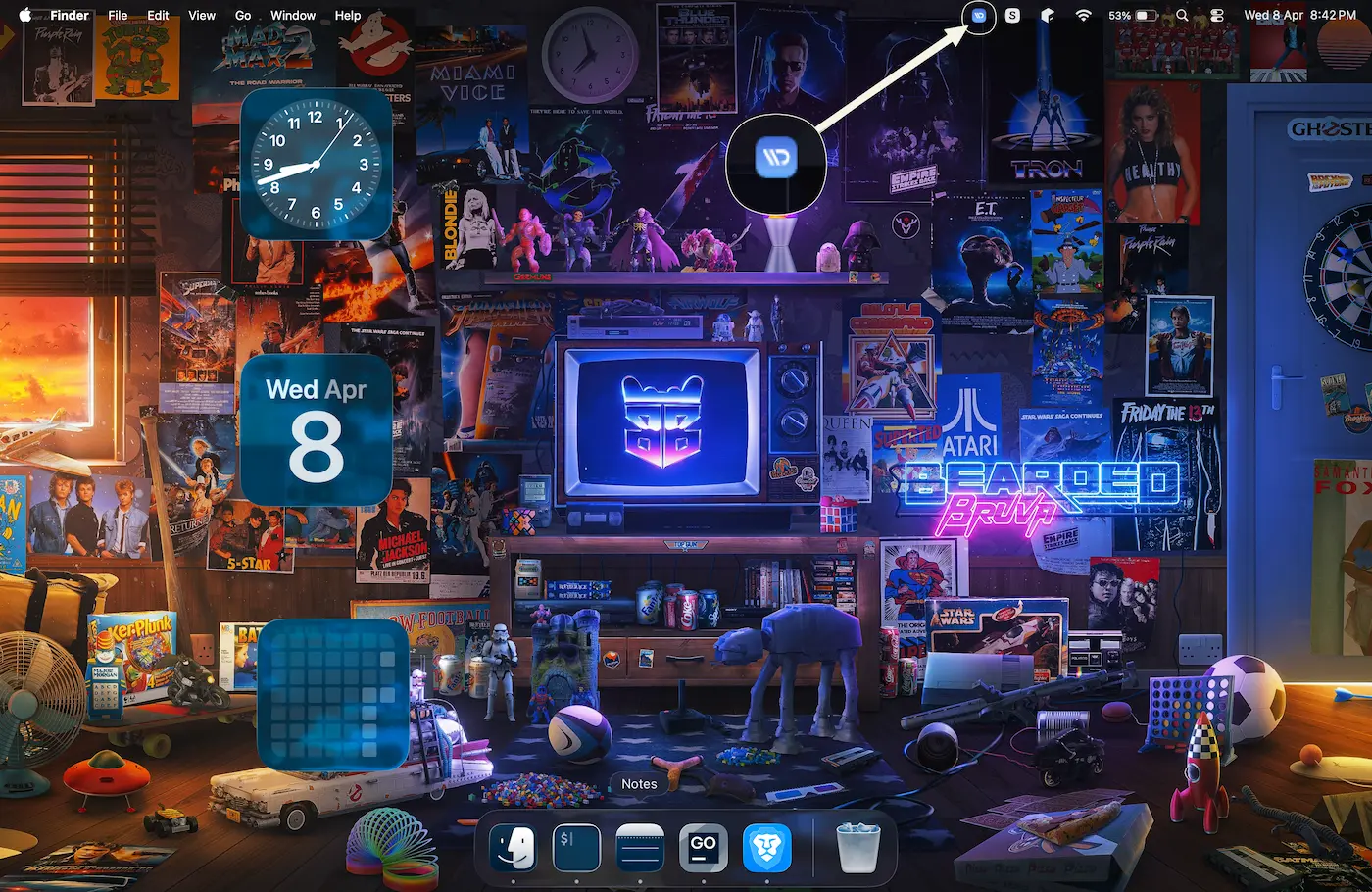 Minimize or close the app window and look at your Mac desktop. Your live wallpaper is running. WallD runs quietly in the background - you'll see the WallD icon in your Mac menu bar. Click it anytime to launch the app or browse the library.