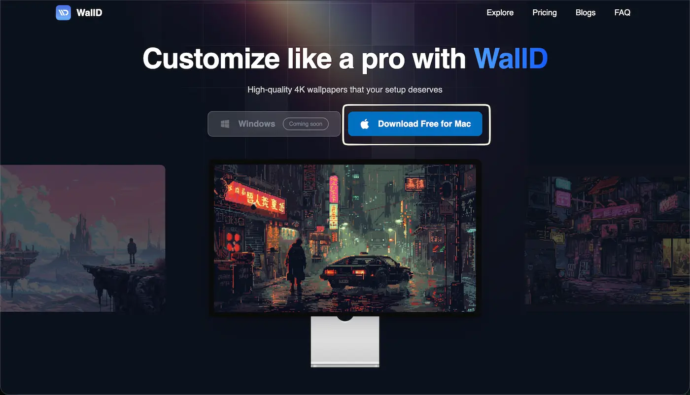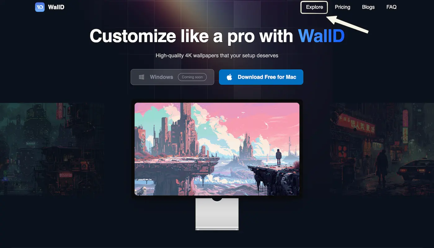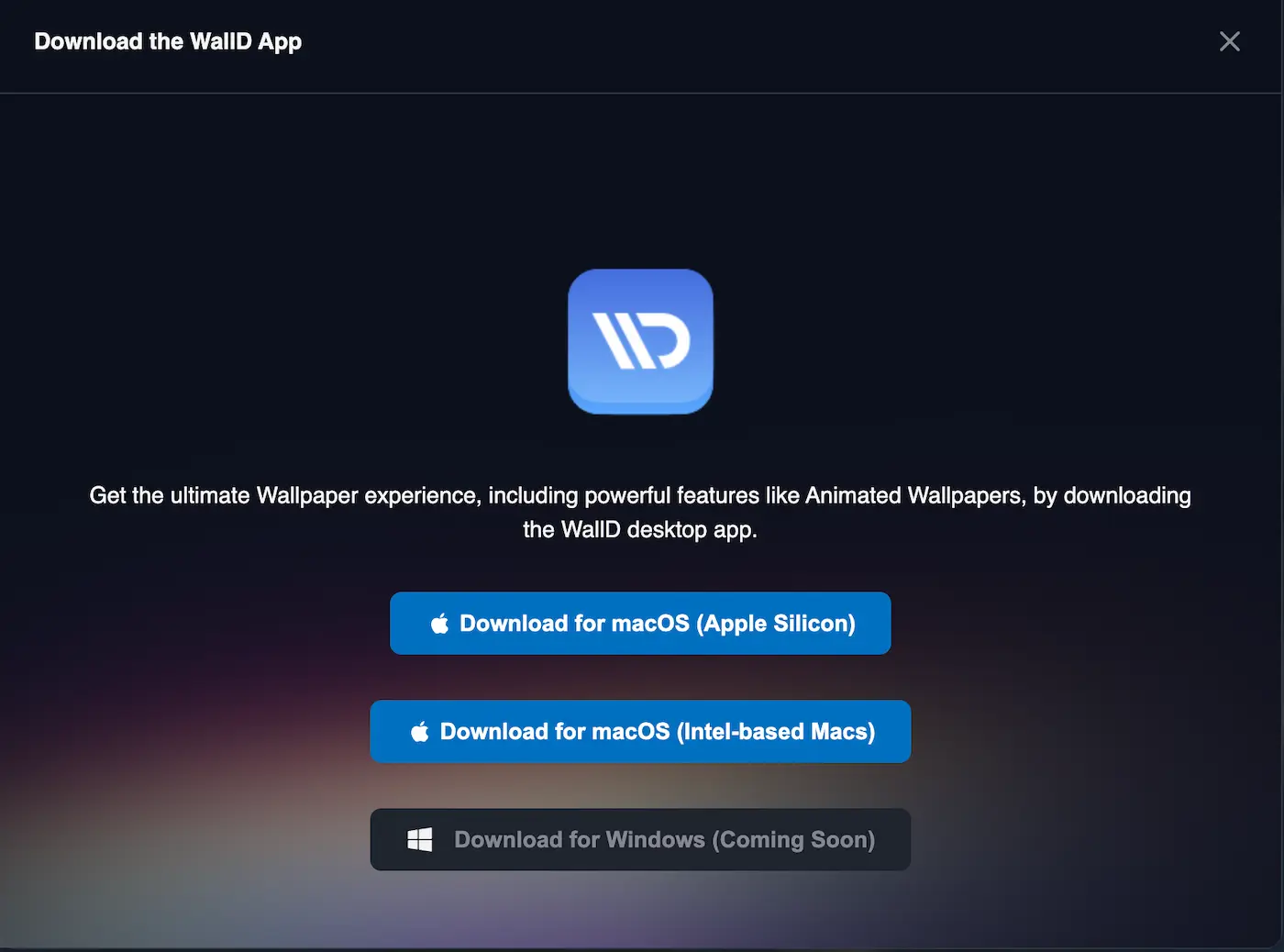 The WallD app is what makes wallpapers go live on your Mac desktop. Click Download App in the top right of walld.app/explore - or the blue Download Free for Mac button on walld.app.